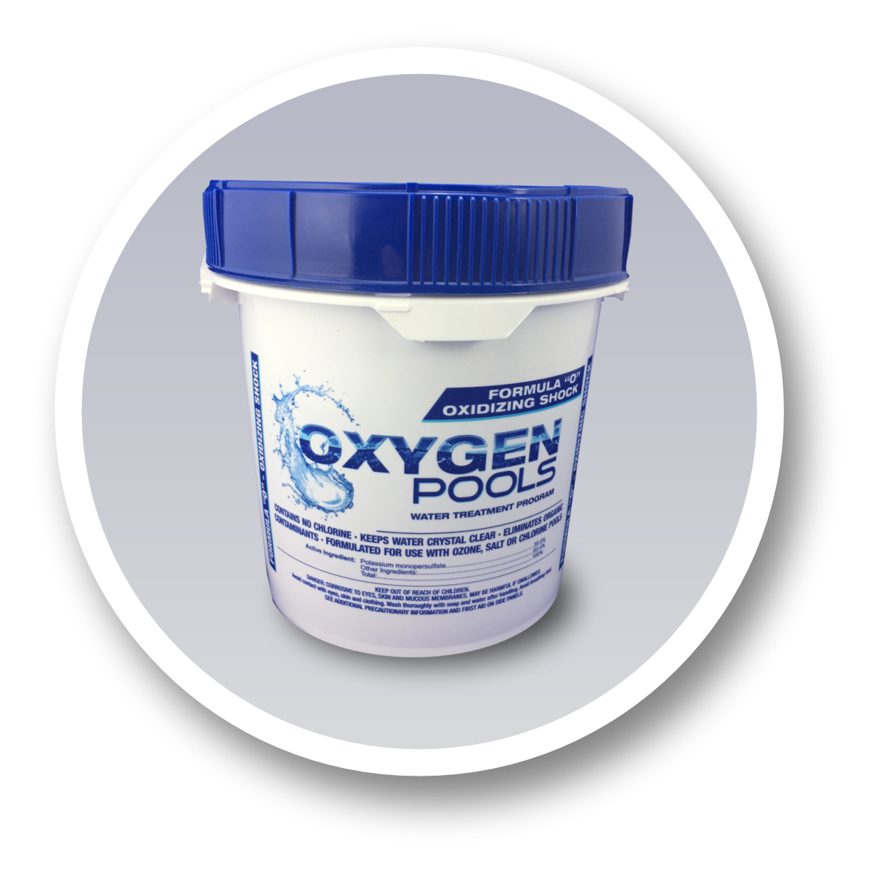 A weekly shock treatment is important. We provide a simple solution with Formula “O”. This is an EPA registered, non chloride blended formula that shocks, clarifies, prevents algae and inhibits staining.